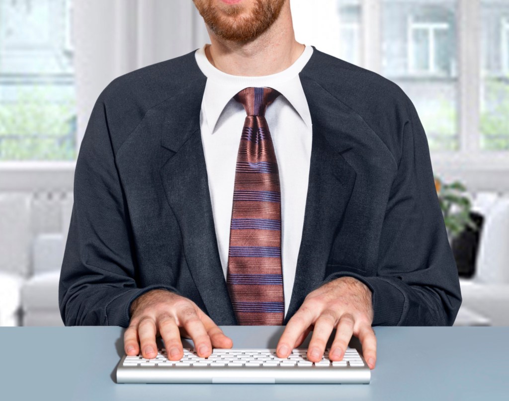 Je houdt gewoon je Comfortabele SnurkTrui aan en schuift aan bij je online meeting. Deze Thuiswerk Trui van Snurk is voorzien van een fotoprint waarop een net vest met daaronder een wit overhemd en stropdas zijn te zien. Net echt. Niet knoeien met je ontbijt en… goedemorgen collega’s!