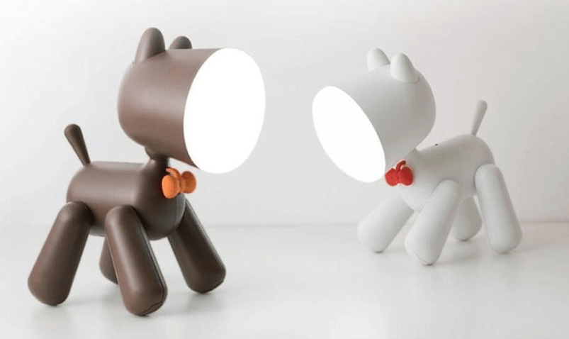 Koddig. Dit nachtlampje voor de allerkleinsten is gewoon koddig. Het lampje is de snuit of het gezicht van een hondje en het hondje is wit of bruin. Het witte hondje heeft een rood strikje en het bruine hondje een oranje strikje. Aan en uit gaat via het staartje. Koddig.