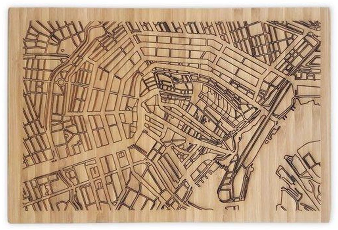 Op de afbeelding hierboven de serveerplank met plattegrond van Amsterdam, top! Naast serveerplanken, ook kaasplanken en borrelplanken. Daarnaast onderzetters, kaarten, tegeltjes. Leuk als cadeau! Voor ieder die trots is op z’n roots…
