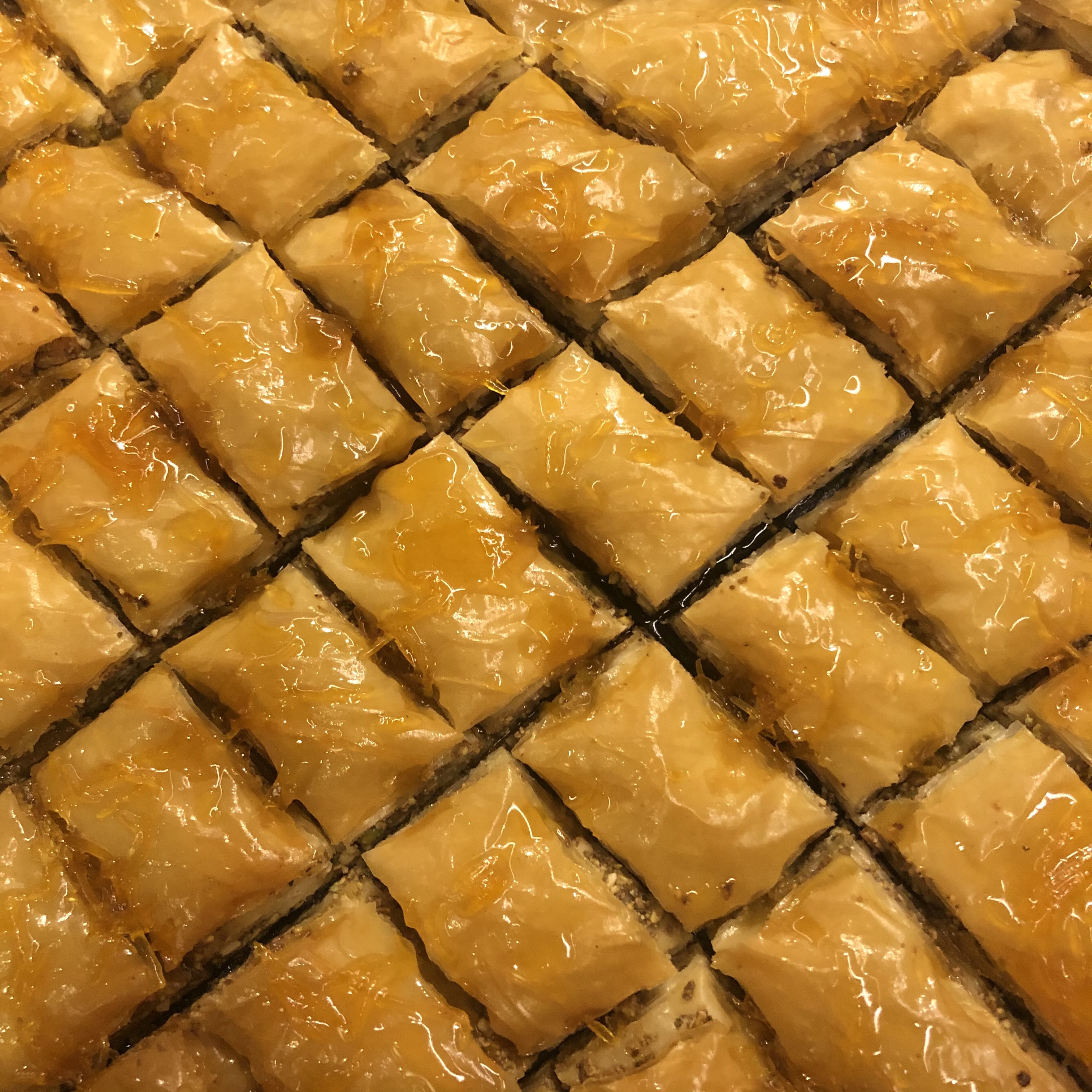Nodig: voor de vulling: 16 vellen filodeeg + 50 g walnoten + 50 g amandelen + 150 g pistachenoten + 50 g amandelmeel + 1 tl kaneelpoeder + 1 tl kardemompoeder + 100 g boter [zoet, 20 stukjes]